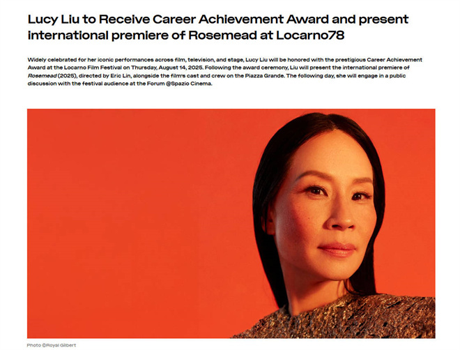 1905电影网讯 据悉,美籍华裔演员刘玉玲获得第78届洛迦诺电影节终身成就奖(Pardo alla Carriera),将于8月14日在洛迦诺电影节期间举行颁奖仪式。